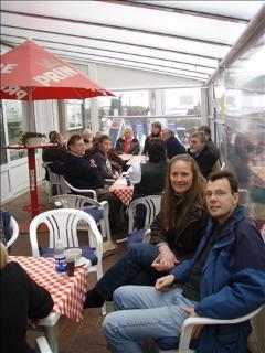 Nach der kleinen gemeinsamen Fahrt zum Olga-Hafen wurden schnell die Tische am Strandhaus Schomaker zurechtgerückt, um an der „langen Tafel“ Platz zu nehmen.