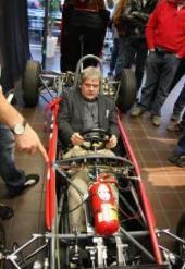 Ziel erreichen: So weit - so gut. Derart auf den Geschmack gebracht wollten natürlich nun einige Gäste den Brabham BT 2 einmal "anprobieren". Kurzerhand wurde also die Karosserie abgehoben und das Lenkrad abgenommen, so dass jeder (der 'reinpasste) Platz nehmen durfte.