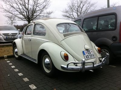 Käfertreffen am Blumenladen: Die Dame in weiß kam übrigens aus Lübbecke, ist Jahrgang 1968 und teilt sich die Scheune mit mindestens drei weiteren Käfern.