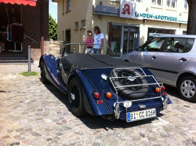 GFK-Karosserie auf Stahlrohr-Rahmen, ein leistungsfähiger Motor dazu und - fertig ist der britische Sportwagen der 70er. Gebaut von 1972 bis 1979 und regelmäßig mit 6-Zylinder-Motoren ausgestattet erhielt der ambitionierte Fahrer den 2500M oder 3000M mit gut 106 bis rd. 136 PS, die mit den höchstens 960kg Leergewicht keine Schwierigkeiten hatten. 10.04.2011, Rathaus