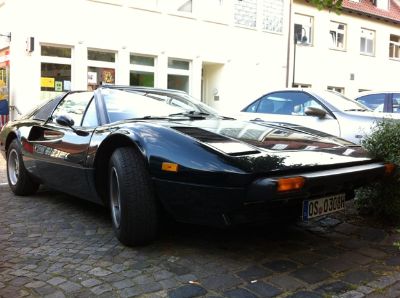 ... z.B. dieser Opel Monza. Im fahlen Licht der Laternen wirkt er wie achtlos dahin geparkt, aber mit 3 Litern Hubraum aus 6 Zylindern war man, dem Manta entwachsen, sehr gut motorisiert ! 03.06.2011, Eisdiele